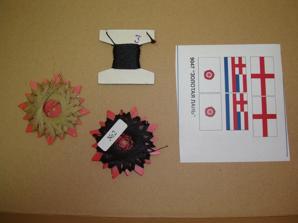 - 3 мотка с нитками (2 чёрных и 1 бежевого цвета)