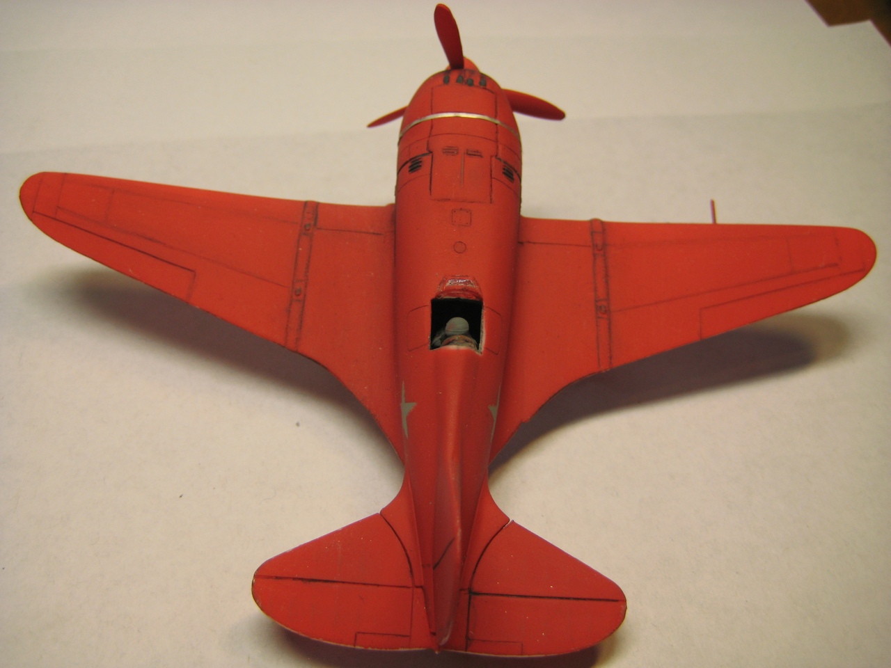 Здравствуйте! Представляю одну из своих моделей - истребитель Поликарпова, который по ряду причин, так и не пошел в массовое производство. Модель при сборке, не доставила особых хлопот, хотя производитель в инструкции предупреждает: Модель выполнена по технологии short run и предназначена только для опытных моделистов. Доработок модели минимум, фигурка летчика из запасов, она в комплект не входит, стяжная лента на капот сделана из клейкой ленты серебряного цвета, такая обычно продается в магазинах строительных материалов. К сожалению, спустя какой-то период времени, через ''серебряный'' скотч стала просвечивать краска. Кстати выбранный вариант окраски у детей и женщин, вызывает дикий восторг, это любимая модель моей жены. Благодарю за внимание!