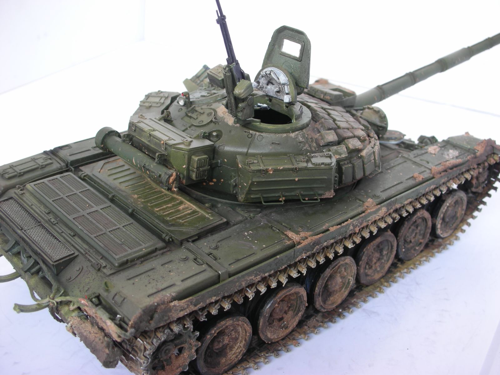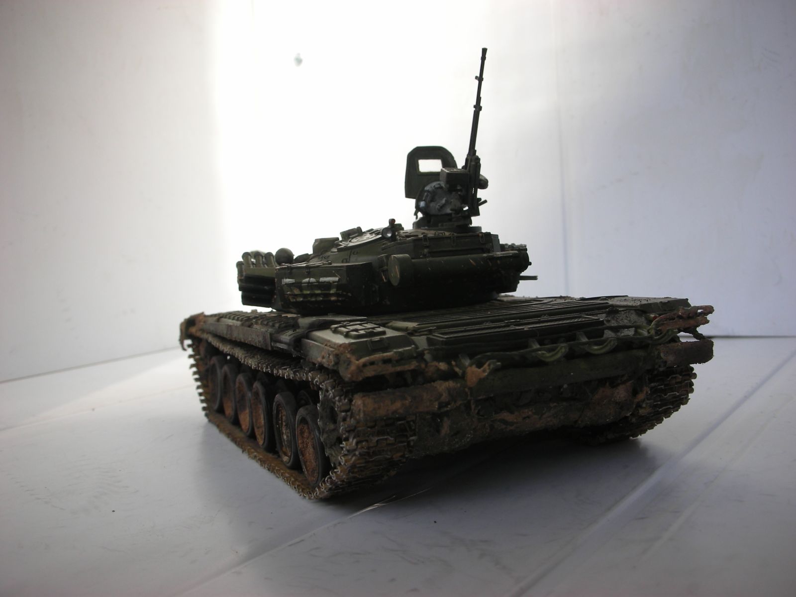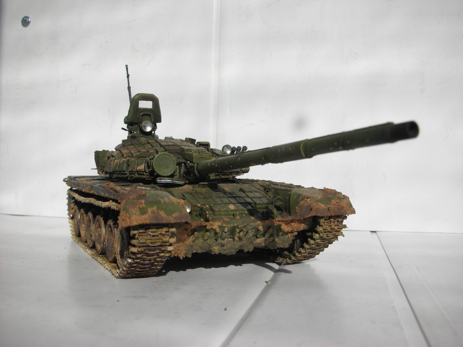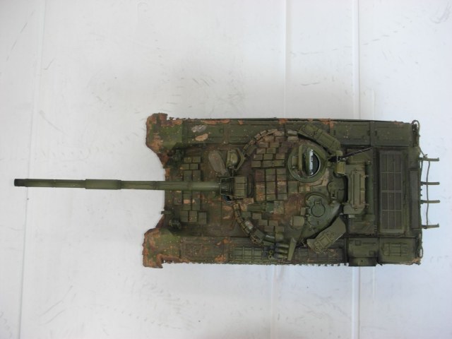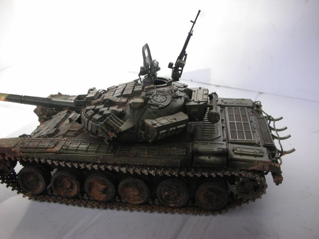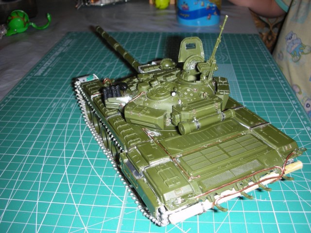 Всем здравствуйте, вот и подошла очередь очередного произведения моего искуства прошу сделать побольше коментариев т.к. в дальнейшем хочу задействовать в его в диараме. Использовал в создании траки friulmodel , 125мм пушка rbmodel, тримплексы из компакта, сделал разрывы и сколы на катках. ручки тросы хамуты проводка бензотрубки из проволоки, заменил передние брызговики или крылья (кому как), фары elf, грунт краски tamiya акан, вся химия mig