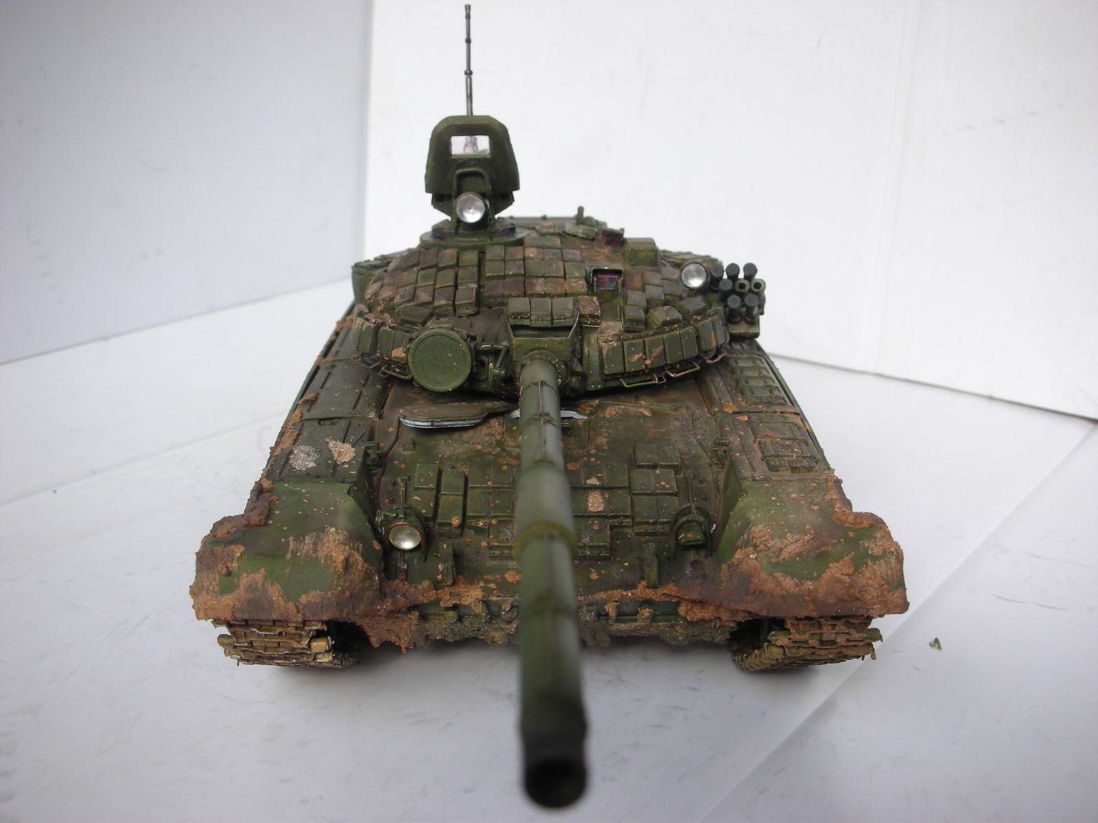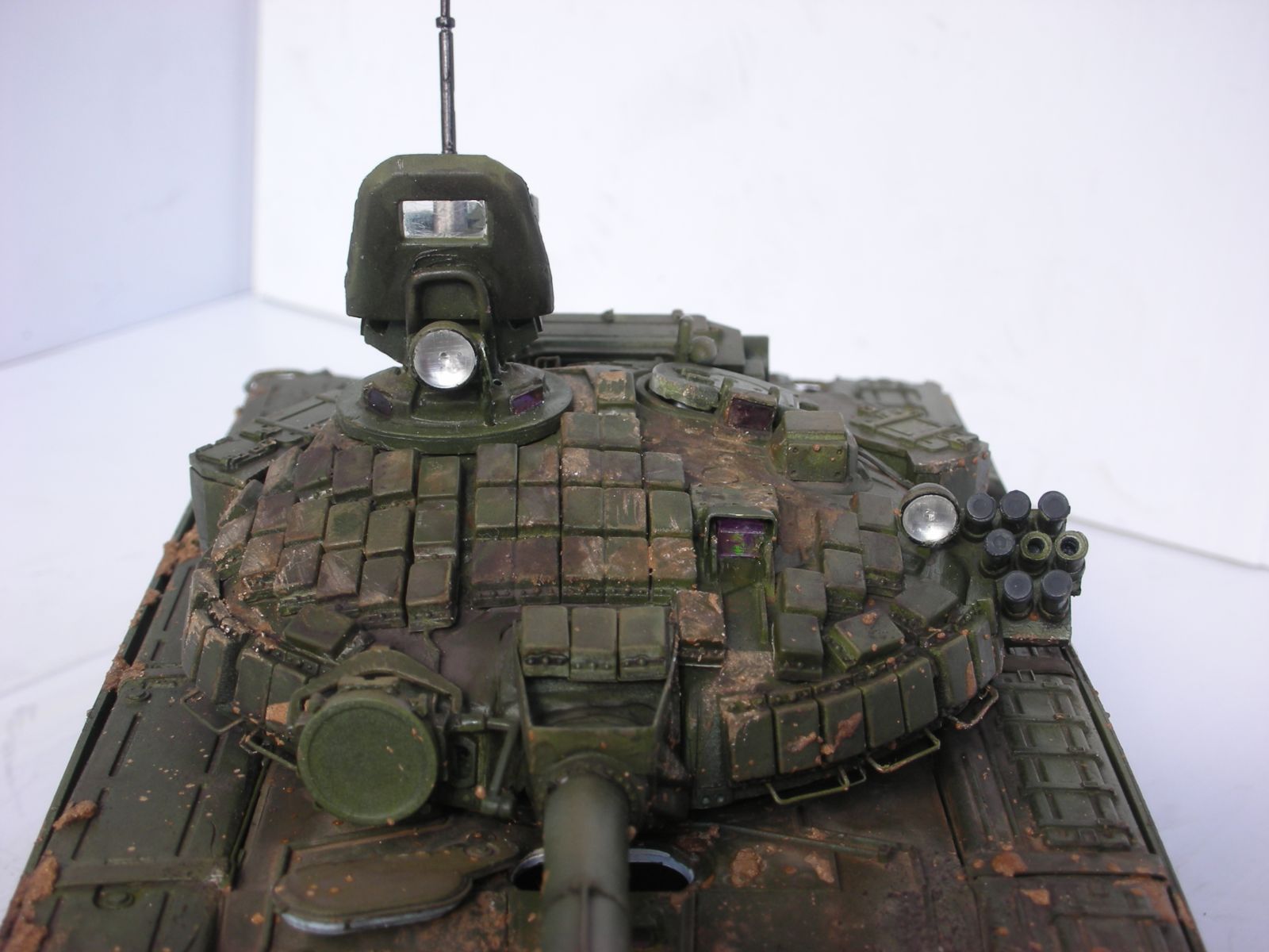 1. Центр фары-луны и орудийного ствола должны находиться в одной плоскости, а у вас луна приподняти минимум миллиметра на три. Блоки Динамической защиты на Верхней Лобовой Детали должны располагаться согласно схеме приведенной выше.