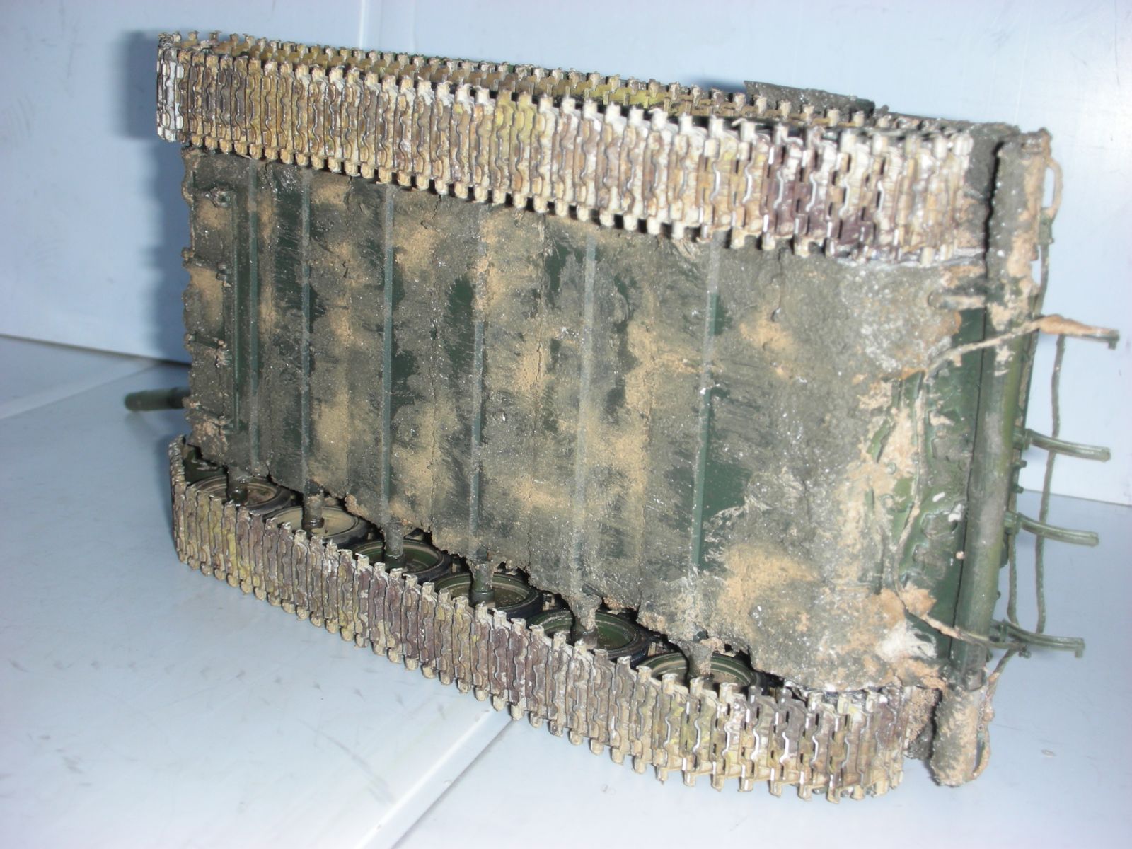 Согласен, и с загнутыми пальцама траков тут ты нахомутал крепко. В наборе Фриул даёт проволку на пальци довольножёсткую и для того что-бы пальци не выпадали - достаточно их просто немножко подогнуть прежде чем вставлять в траки. А так неплохо, и грязи побольше, не стисняйся.