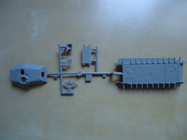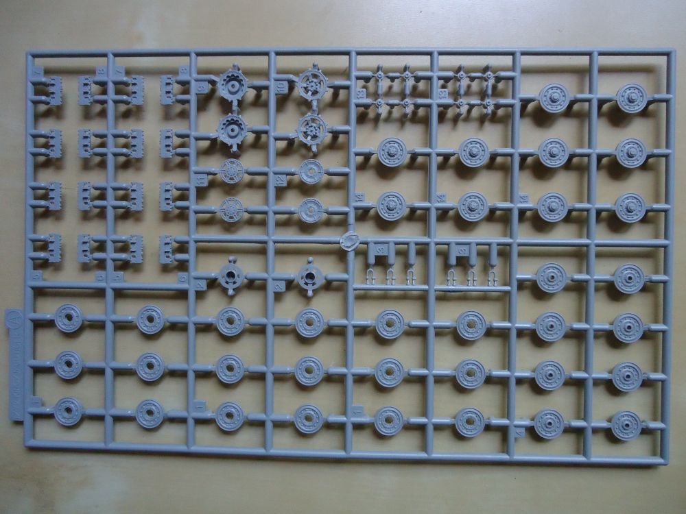 итак, пять литников с деталями (количество небольшое). качество отливки стандартное для дрегона, циммерит отлит хорошо, выглядит реалистично. гусеницы так же стандартные - ДС. скромненькая плата с травлением (только решетки МТО), декали на шесть вариантов на двух листках.