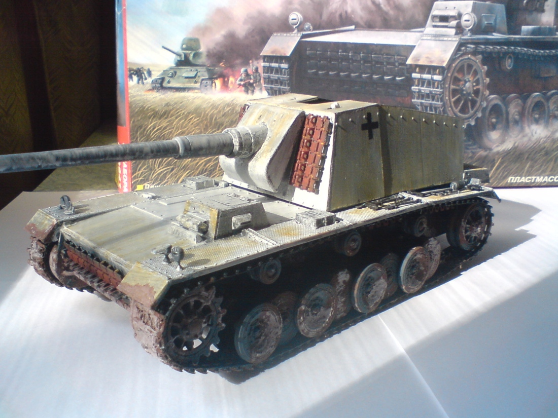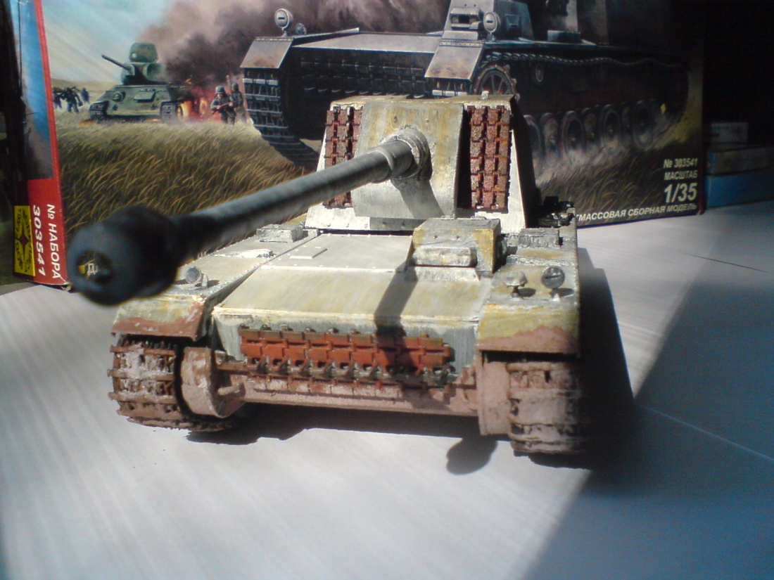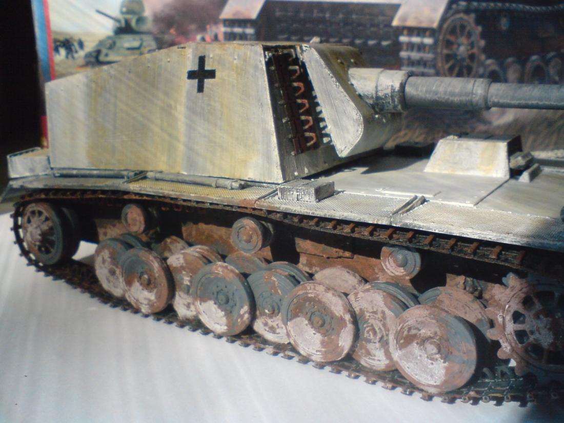 по модели: Егор, зимний камо получился только на стволе орудия. желтый налет по всему корпусу совершенно излишен. грязью ты занялся слишком рано, она тоже не к месту и неестественна. бандажи на катках неокрашены.