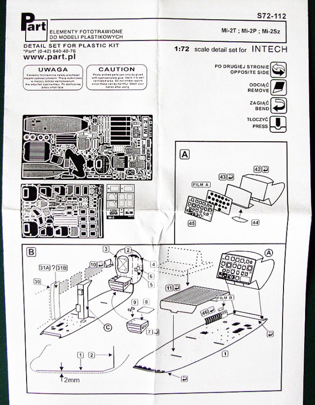 Очередной набор фототравления поляков для МИ-2 такой же польской фирмы, которая уже приказала долго жить-)). В настоящий момент она именуется MASTER CRAFT. Также он подойдет к его украинской модели от SKY HIGH. Так что и этот фототравленный набор замечательно впишется в эту откровенно говоря слабую по исполнению и деталировке модель.