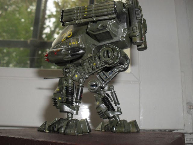 Выставляю на ваш суд модель шагающей машины «хоплир».Книжка навеяла. За основу взял модель от фирмы "Технолог" «раптор», зашпаклевал всё ненужное, вреза тёмное стекло, ракетные комплексы и авиационную пушку взял от КА-50. Красил аэрографом, краски «акан».В общем каску надел прошу высказываться.