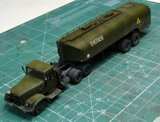 А вы не замечаете что рама длинее миллиметров на 5.И это вопрос к е-классу. Оне из соображений унификации дают раму от краза 255б а она длиньше. Колеса тягача надо фтопку, мосты на 2 миллиметра поднять. И вообще с поздними модификациями ТЗ-22 шли другие модификации кразов. У них поворотники в бампере. Подножки на кабине к чертям. Мелочей типа дворников нет. Огнетушители на заправщике сидят высоко. Нет пневмо и электромагистралей на заправщике. Одноколесный держатель запаски - должен быть двух... Это только примерный перечень моих претензий к модели. Чтобы это все переделать нужен месяц а не 1 неделя.