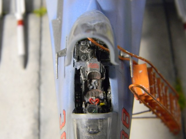 Ну и трап: его правая оконечность никогда не залезала под фонарь. Край правого поручня трапа заканчивается по обрезу кабины пилота.