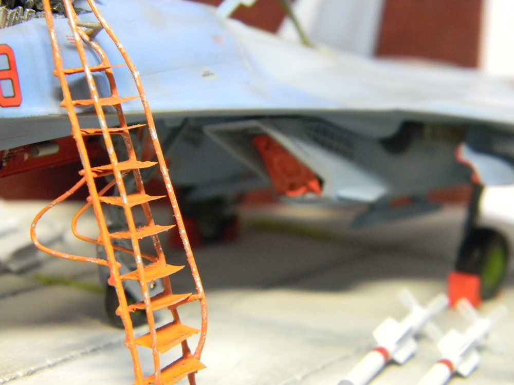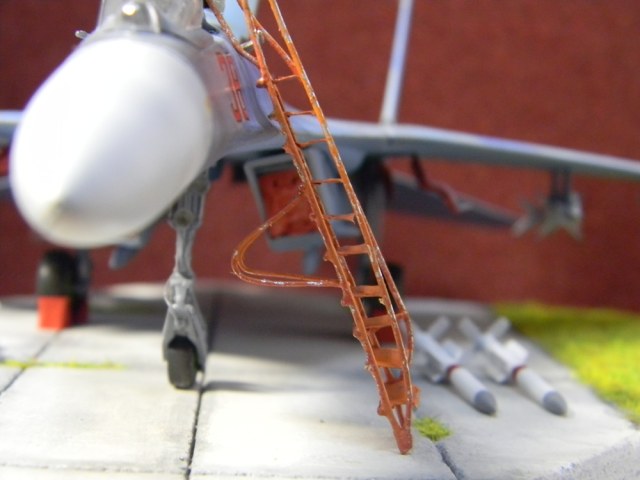 Если чо - ими вобще Су-27 не снаряжаются , это были единственные ракеты в наборе ( р-73 -мелочь ) они были мной сделаны с добавлением травленных рулей , но вешать не стал - итак косяков хватает . Кстати могу выложить фото , где всё вооружение Сушки раскидано в художественном беспорядке вокруг него , в том числе и ракеты , и замечу - прямо на бетон ! Правда ракеты не рвв-ае. А лестница - это так , проба пера , сделал за 30 минут , вот возьму и брошу её в траву- пусть ржавеет , зато оцените обдиринг- сделано по патентованной технологии - для этого лестница и делалась