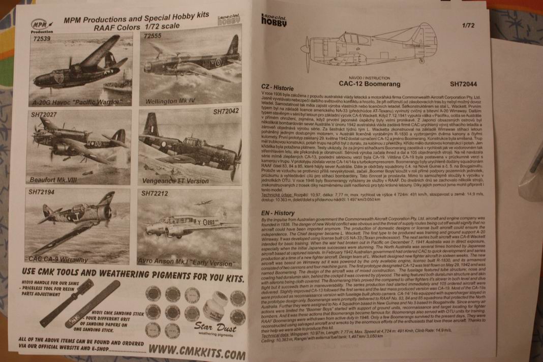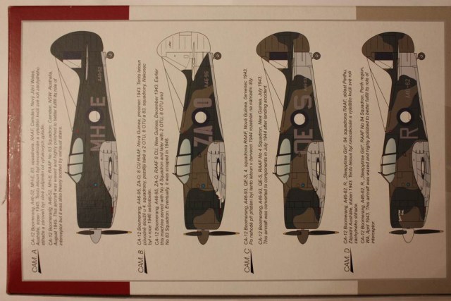 Представляю обзор модели ранней версии истребителя «Boomerang» СА-12 от SpecialHobby. Коробка – с боковым клапаном. На лицевой стороне – BoxArt, на обороте – варианты окраски.