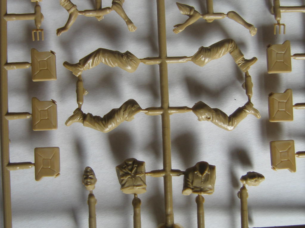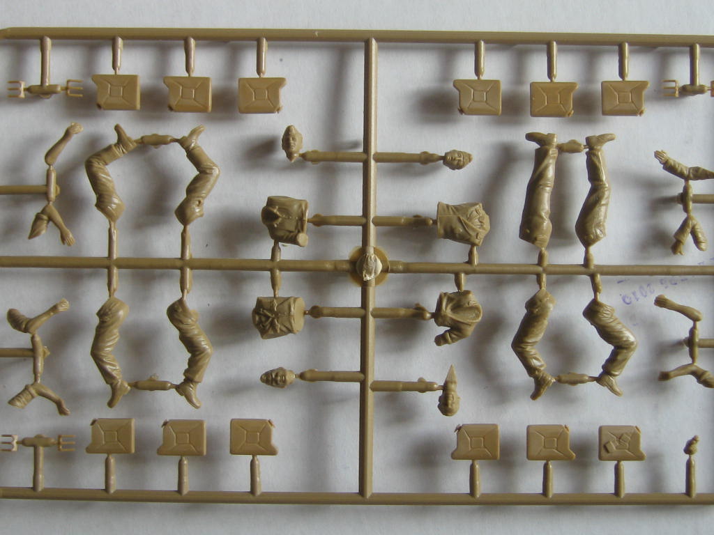 На канистрах есть техническая ошибка (впрочем она встречается и у Тамии)- заливную горловину надо спиливать и передвинуть на левый край- в моделе она размещена на двух половинах по середине