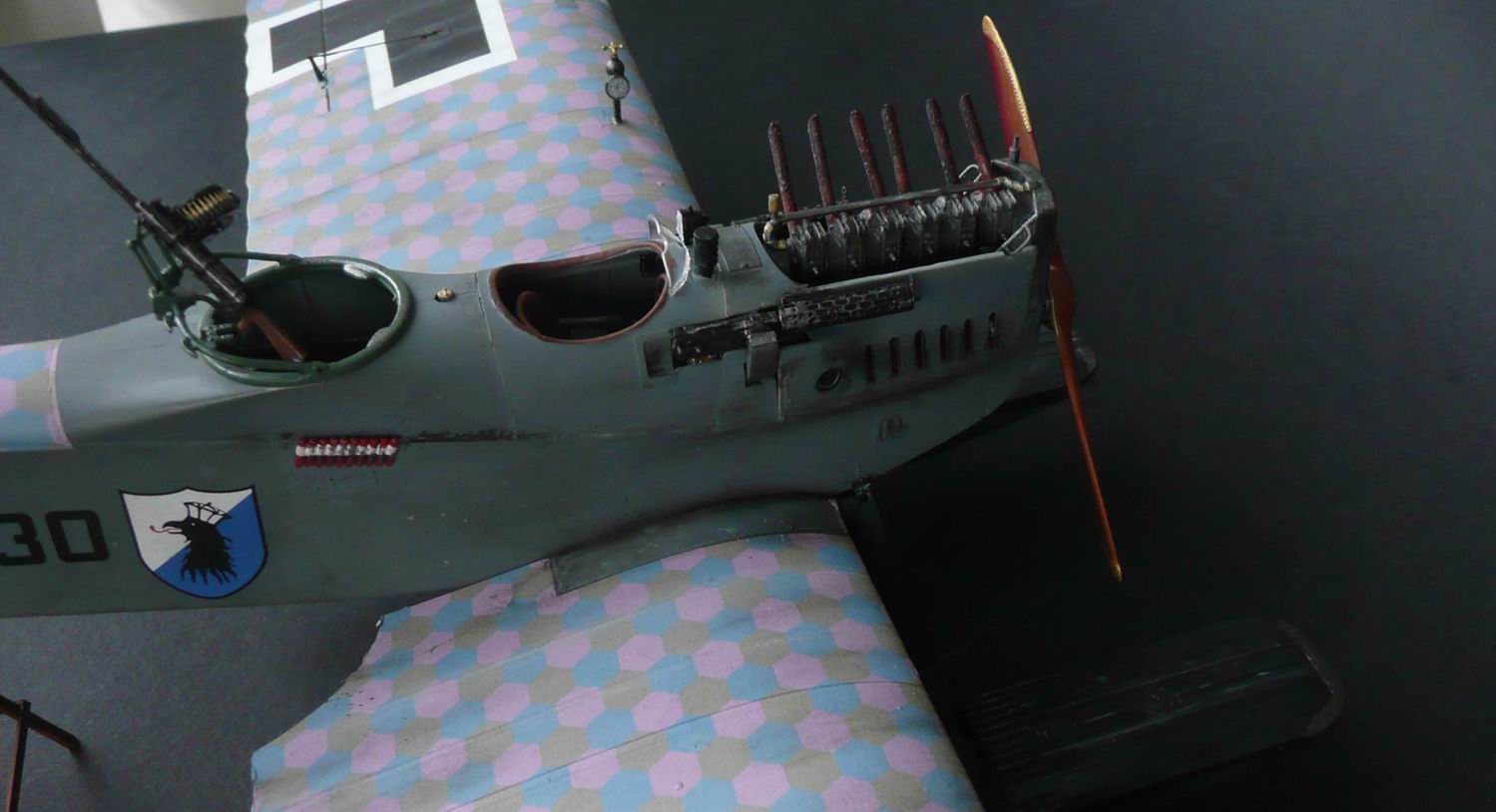 Модель в целом "на отлично". Понравились пулеметы и двигатель. Не понравилось имитация дерева винта - можно бы и получше для 1:32.