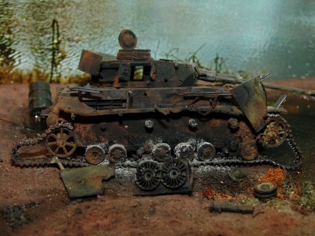 Диорамка правда старая, отрабатывал на ней технику работы со сгоревшими танками.