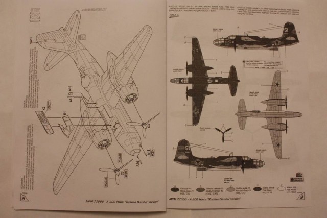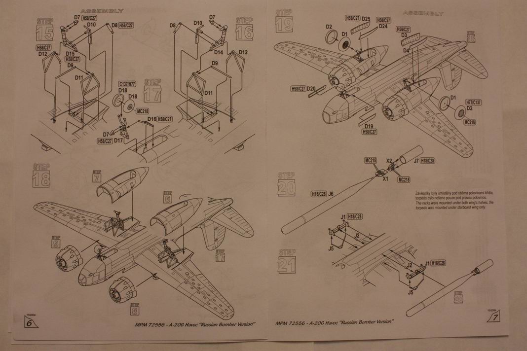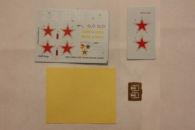 Маски чехи в последнее время стали частенько вкладывать в свои наборы. Вариант интересный, советская переделка A-20G с застекленной кабиной и торпедными мостами. Кстати, и на картинке и в схеме сборки даны 2 торпеды, на небольшое расстояние да с крепкого грунта так иной раз летали. Но чаще вешали только одну торпеду, по левому борту. А еще могли подвесить мину либо глубинную бомбу.