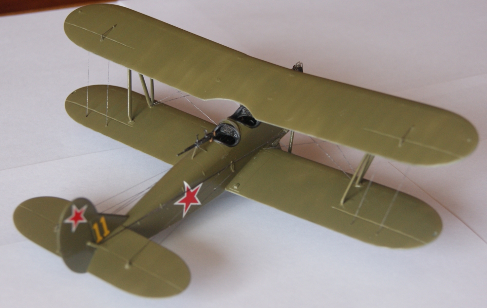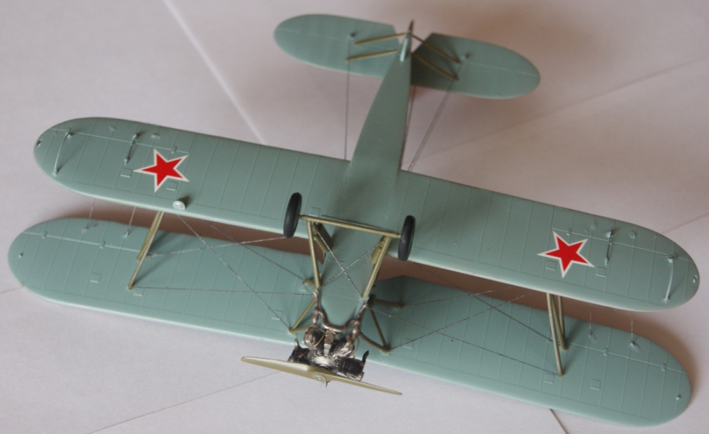 - К фюзеляжу приклеил киль, стабилизатор, нижнее крыло, верхнее склеил и посадил на кабинные стойки, затем приклеил крыльевые стойки.