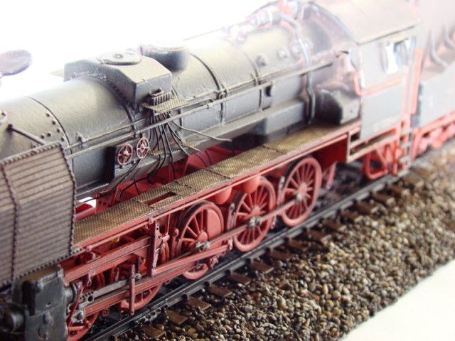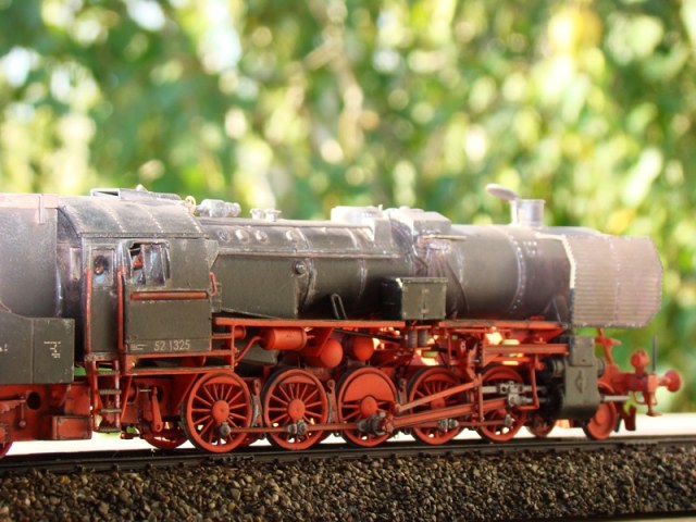 Очень понравилась модэль, но поскольку паровоз уже поежжаный - его ходовая должна быть больше в потёках мазуты, ведь его постоянно смазевают. Я так думаю.