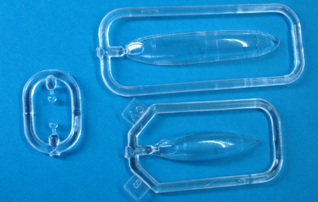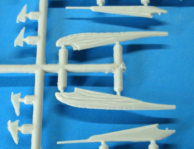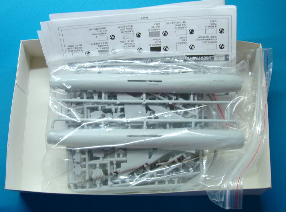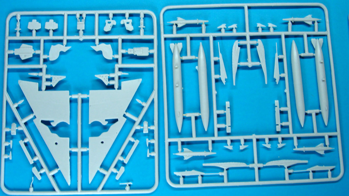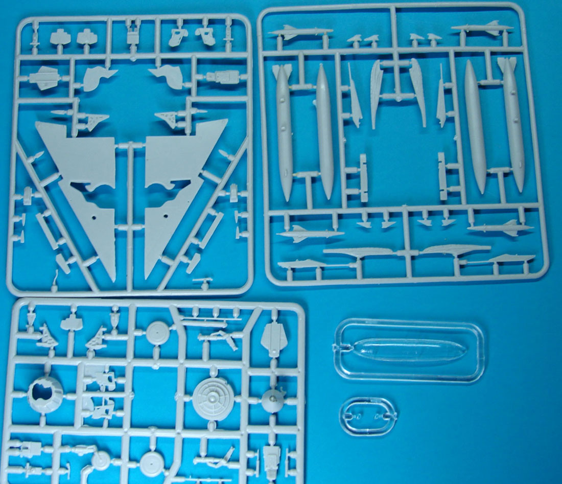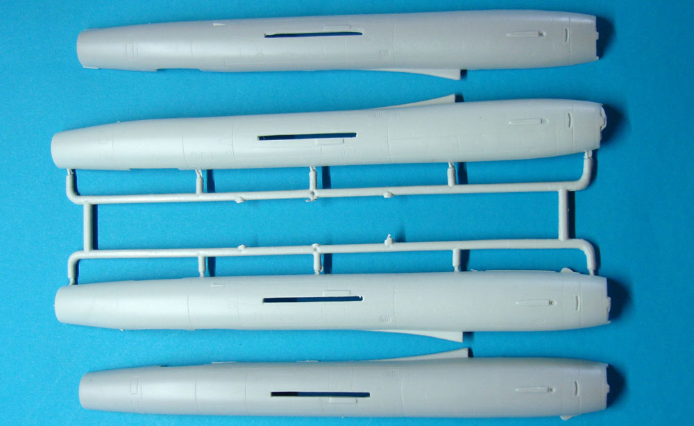 Собственно модели различаются лишь одной рамкой с половинками фюзеляжа. Литники видимо первых отливок облоя терпимый минимум, расшивка довольно неплохая и точная, хотя не факт что при сборке не придется дорезать и перерезать. Ракеты РС-2УС на себя хоть и похожи, однако необходимо сделать новые рули переднего оперения- на оливке они как непонятные пупырышки которые недолго спутать с облоем:). Остекление вполне приличное для ЛНД.