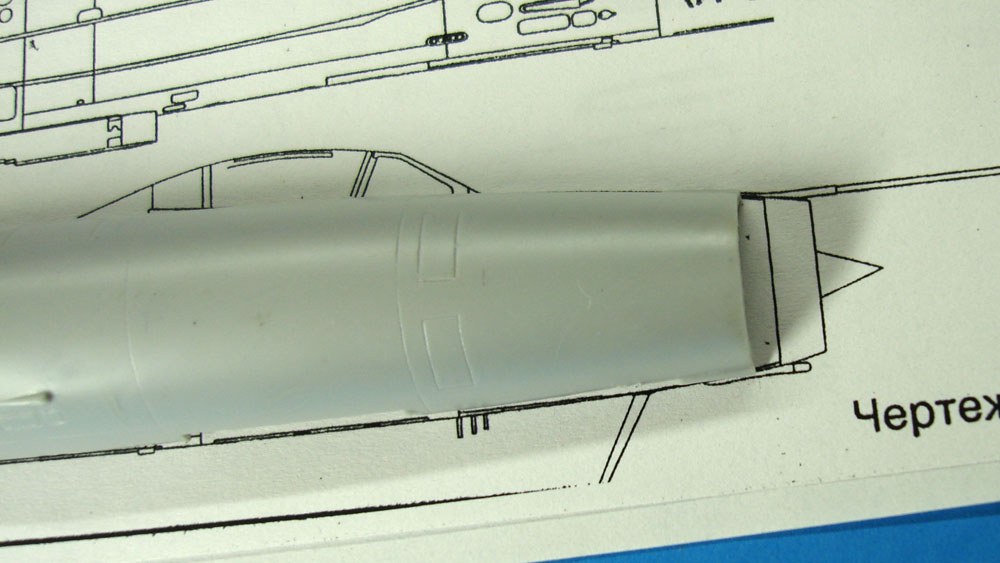 на стабилизаторе не хватает длины хорды по задней кромке, фонарь так же немного на 2 мм короче чем надо, косой срез на закрылке больше, ровно как и ширина законцовки по хорде на 1,5 мм, фюзеляж на 3мм короче, вставка необходима за кабиной, киль на 1,5мм ниже.