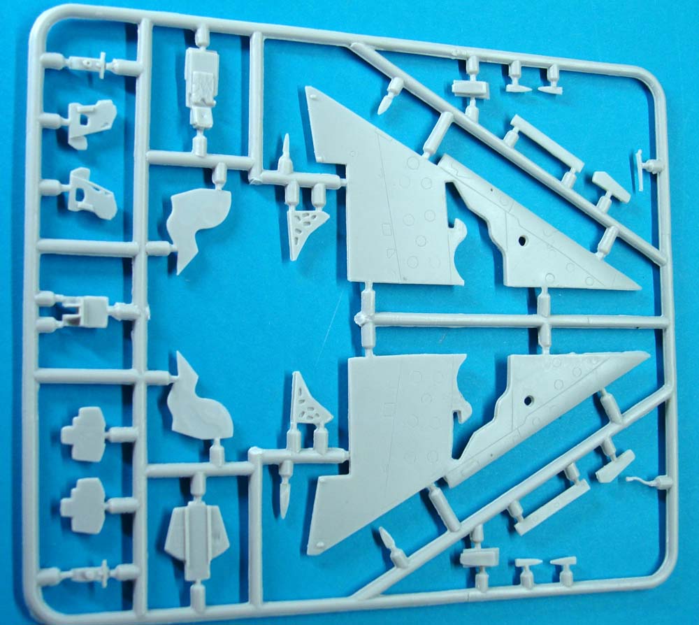 Членение модели вполне удобно при сборке. стойки и ниши шасси, пневматики с дисками, кресла КС-3 вполне похожи на правду и пролиты довольно хорошо, хотя и придется им править надфилем и тонким ножом форму. АКУ дополнительно даны в зачехленном виде, правда складки даны грубовато. Приборки даны декой, в принципе при закрытой кабине особо ничего не видно- ранее собрал Су-11, даже при зафутуреном фонаре мало что просматривается. По тому же опыту скажу, что половинки крыльев придется стачивать по толщине долго и нудно, а стыки крыла с фюзеляжем обильно подгонять и шпаклевать.