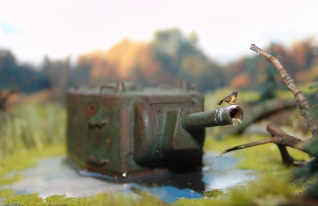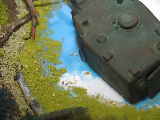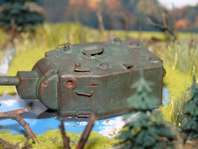 оживило бы диораму если бы танк чуть больше из воды вынести и чуть на бок ... вовеселее было бы