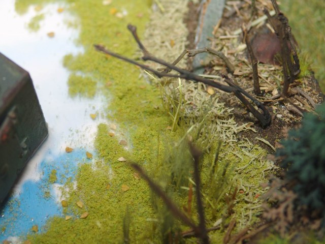 Растительность и антураж выполненный с нуля автором, весь очень понравился. Не понравились пластиковые елки.Они для начинающего может и прокатят, но для Вашего, Stive, уровня уж простите, ну никак.