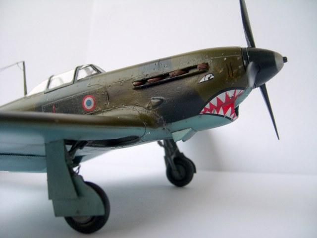 С декалями всё шло неплохо, пока дело не дошло до "зубастой пасти" - во-первых, производителем она дана не верно, потому как на фото прототипа верхняя "челюсть" имеет ВСЕ (!) зубы, а во-вторых, даже если декаль делалась именно для этой модели, она никак не подходит на нужное место. Поэтому после долгих подгонок, разглаживаний и приваривания, декаль расползалась и рвалась. Приходилось из других наборов вырезать кусочки соответствующего цвета и дособирать этот "пазл". В результате получился "зубастый француз советского происхождения" с пародонтозом :))))))