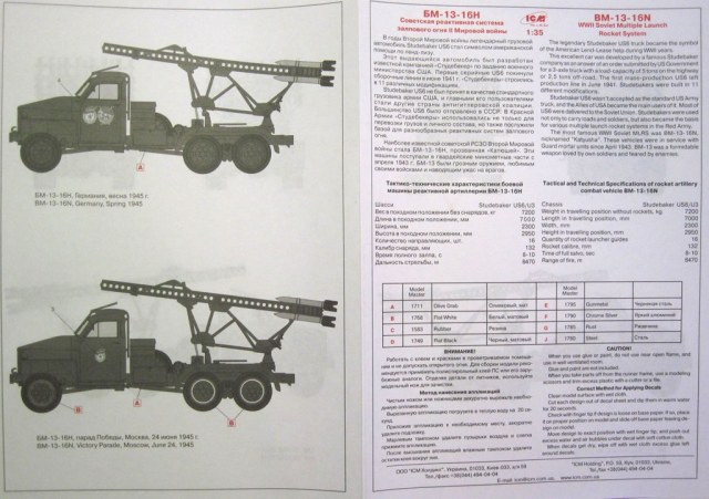 Аналогов данной модели в 35-м масштабе я не встречал (если не считать набора от "Моделиста", который, по слухам, перепаковывает тот же ICM). "Звезда" выпускает модель БМ-13 на базе послевоенного грузовика ЗИС-151, а "Восточный Экспресс" выпускает модель "Катюши" на шасси ЗИС-6.