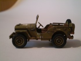 Вот и сподвигнулся я самостоятельно сделать модельку давно мною любимого авто. Виллис делался по чертежам из МК за 1993 (по-моему) год, графика была приведена в 72 масштаб. Материал - различные кусочки полистирола. Колёса - доработанные шасси от модели реактивного Лайтнинга. Окраска - хаки от Ревелл. Ободрано и запачкано не очень, но как есть, так уж есть)))