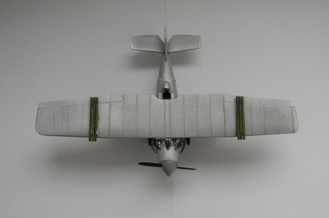 Александр, если Вы решили окрасить данную модель самолета в серебристый, то вам надо было переделать хвостовое оперение и обтекатель винта (сравните предложенные Вами фото с моделью), и на нем не было никаких опознавательных знаков, т.к. он был так окрашен во время испытаний. А тот вариант, что собрали Вы должен быть окрашен в зеленый. (У Вас на коробке даже так изображено).