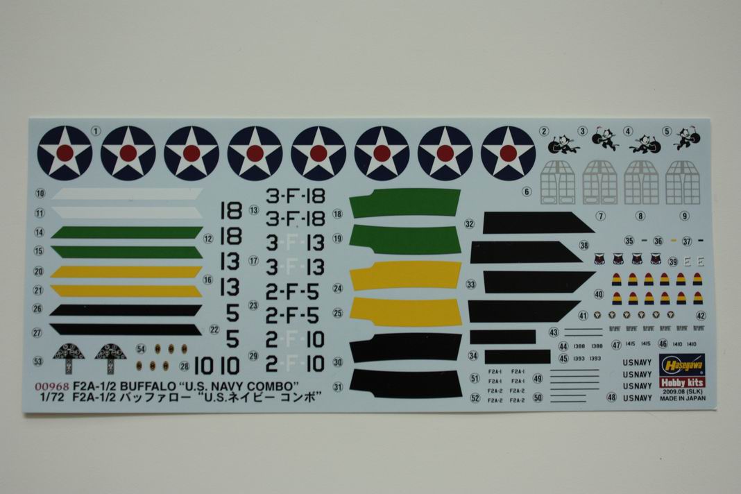В коробке лежат два комплекта, отличаюшие двумя рамками. Позволяю собрать модификации F2A-1 и F2A-2