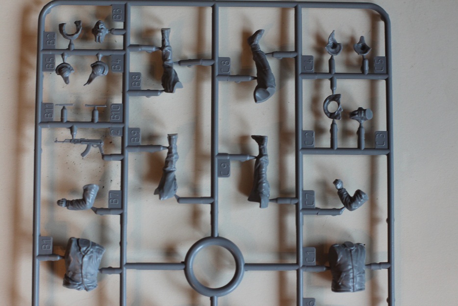 Для звезды набор довольно хорошего качества литники серого пластика на их представлены три танкиста с достаточно хорошей детализацией. При беглом осмотре утяжит, облоя и других не приятных вещей я не обнаружил, к двум танкистам даже имеется подставка при нормальной тонировке можно её оставить. Думается сборка пройдёт нормально, и стыкуемость будет хорошая.