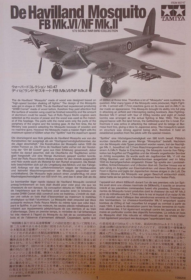 Лучшая на сегодняшний день модель Москито в 72 масштабе.