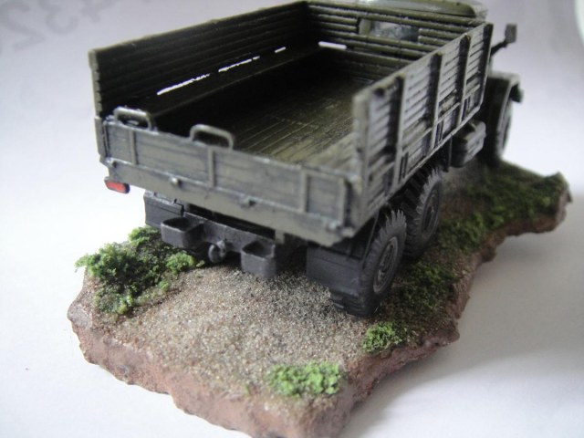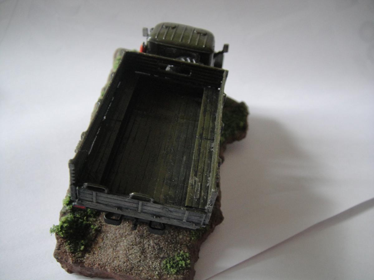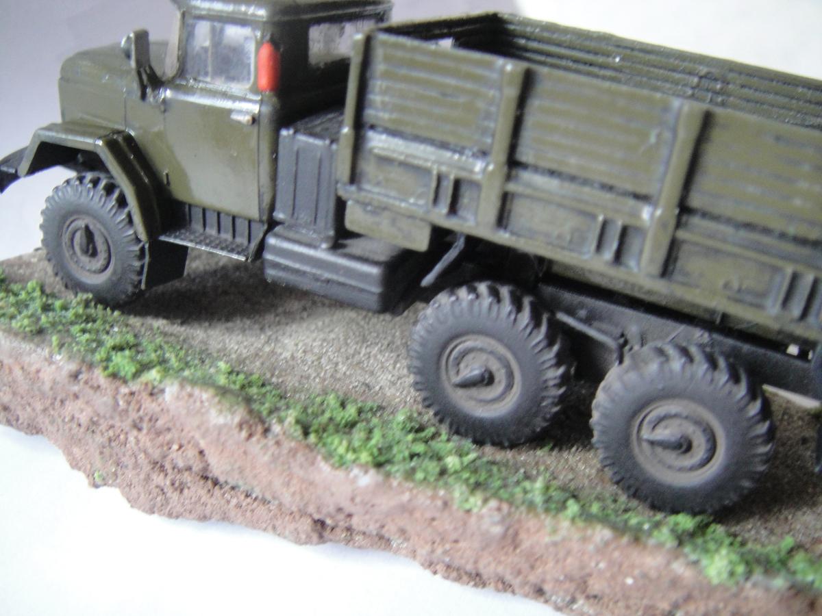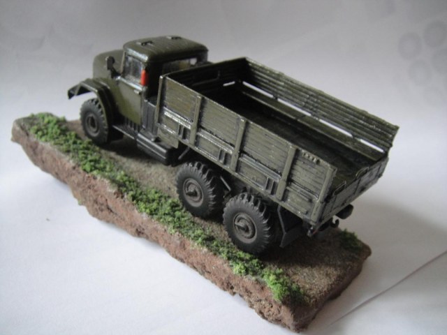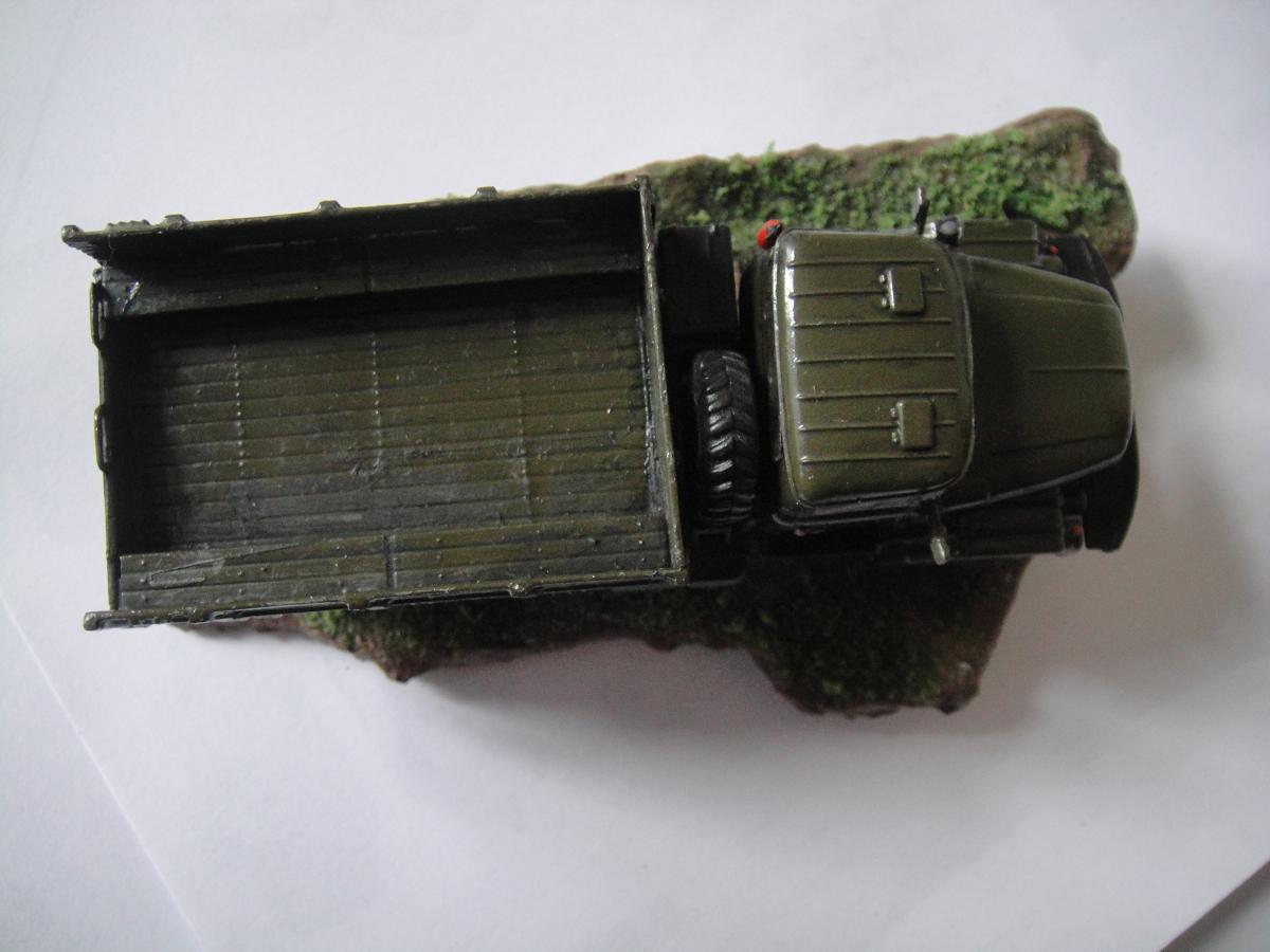 Ну, вот и закончил я свою первую сказку. Можно сказать, что это моя первая серьёзная модель. Грунтовка "Акан", краски - из баллончика, акрил от "Звезды". Припылил"Миг-ом", смывка акрилом от "Звезды". Первый опыт в 72-ом. Про защиту фар говорить не надо, я знаю, что её нет, и что я её где-то посеял. Лобовухи получились мутные, я знаю.