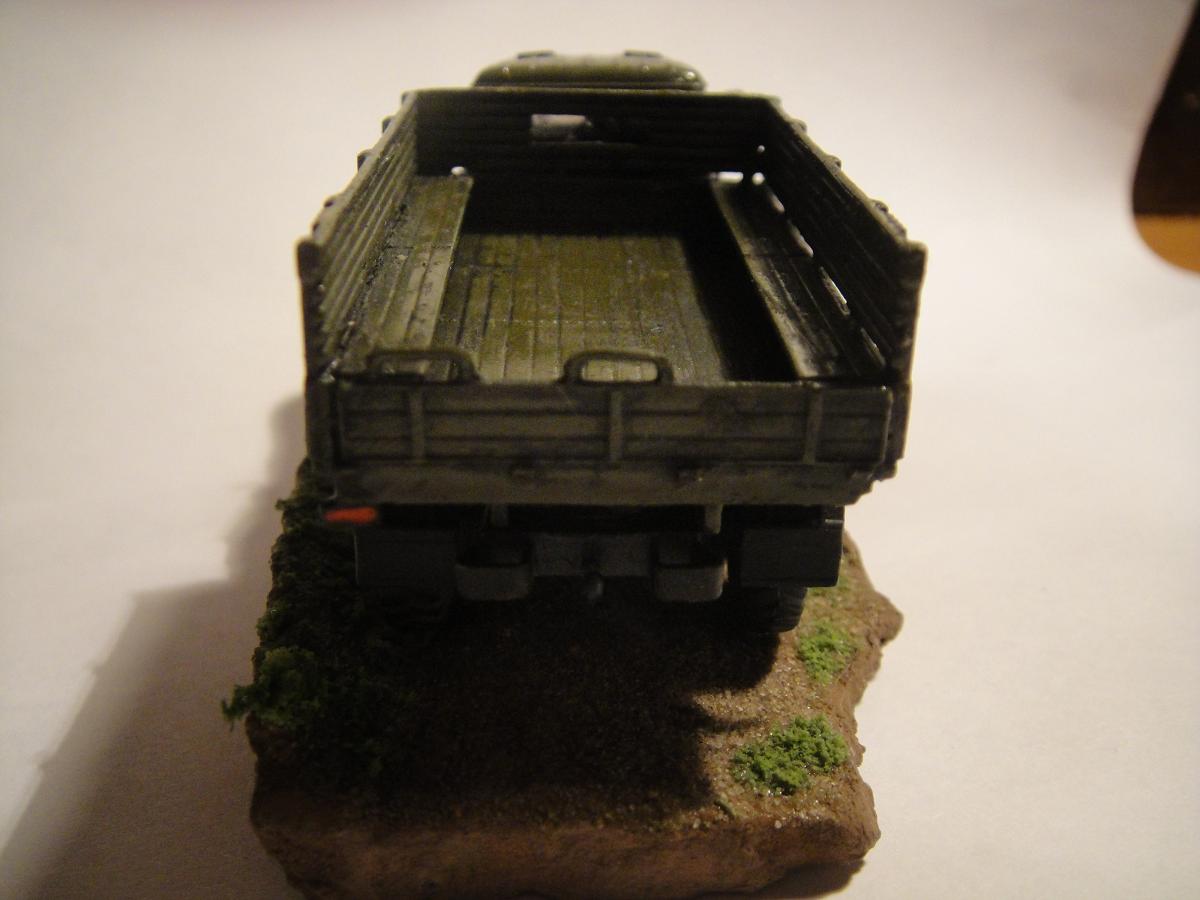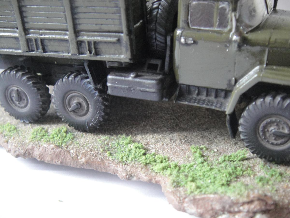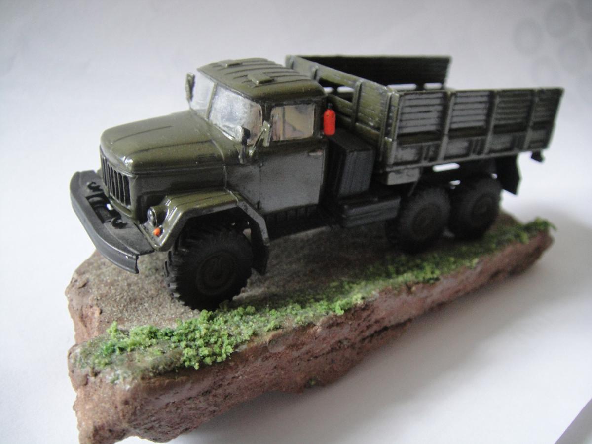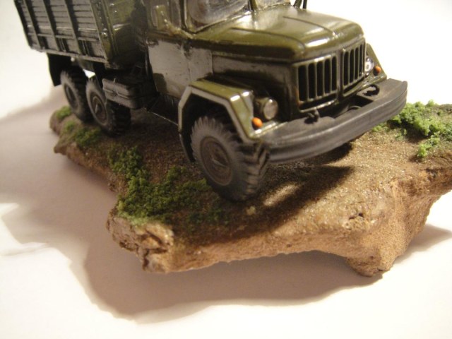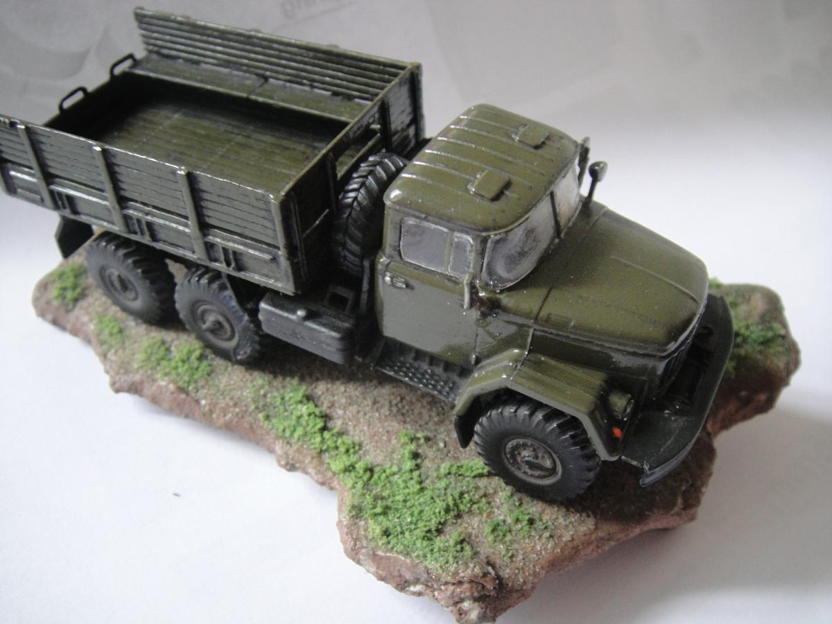 Ну, вот и закончил я свою первую сказку. Можно сказать, что это моя первая серьёзная модель. Грунтовка "Акан", краски - из баллончика, акрил от "Звезды". Припылил"Миг-ом", смывка акрилом от "Звезды". Первый опыт в 72-ом. Про защиту фар говорить не надо, я знаю, что её нет, и что я её где-то посеял. Лобовухи получились мутные, я знаю.