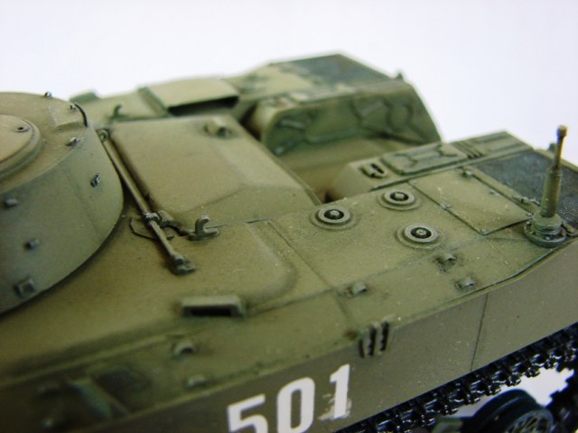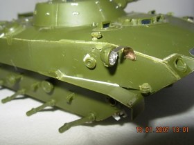 Модель получилась очень даже хорошо, про гусеницы уже сказали, соглашусь что надо что-то с ними сделать. А вот вопрос про перископы, у Звезды в наборе стекла шли для них, а у вас почему-то я их не рассмотрел, по моему с ними было бы эффектнее, хотя может это на фото так плохо видно.
