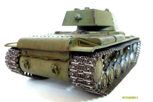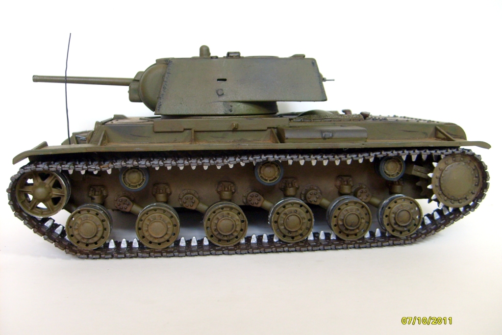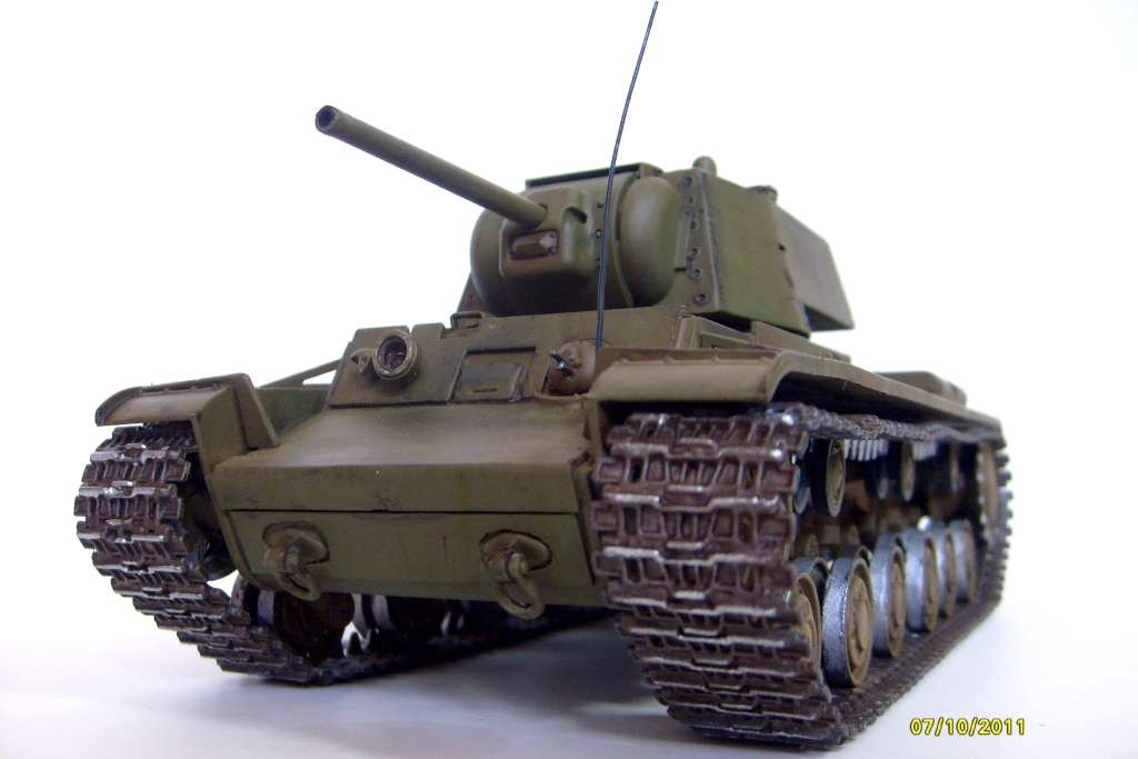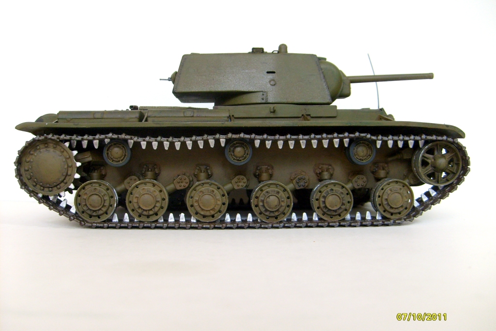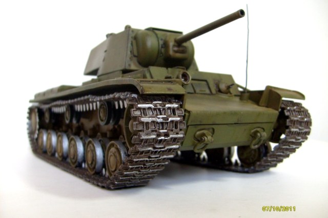 Хороший КВ. Из недостатков еще отмечу отсутствие с левого борта одного треугольника, что надгусиничную полку держат (не знаю как правильно они называются) - хотя может это авторская задумка такая? И еще помимо стволов пулеметов еще надо было бы просверлить отверстия под прицел в подвижных бронировках.
