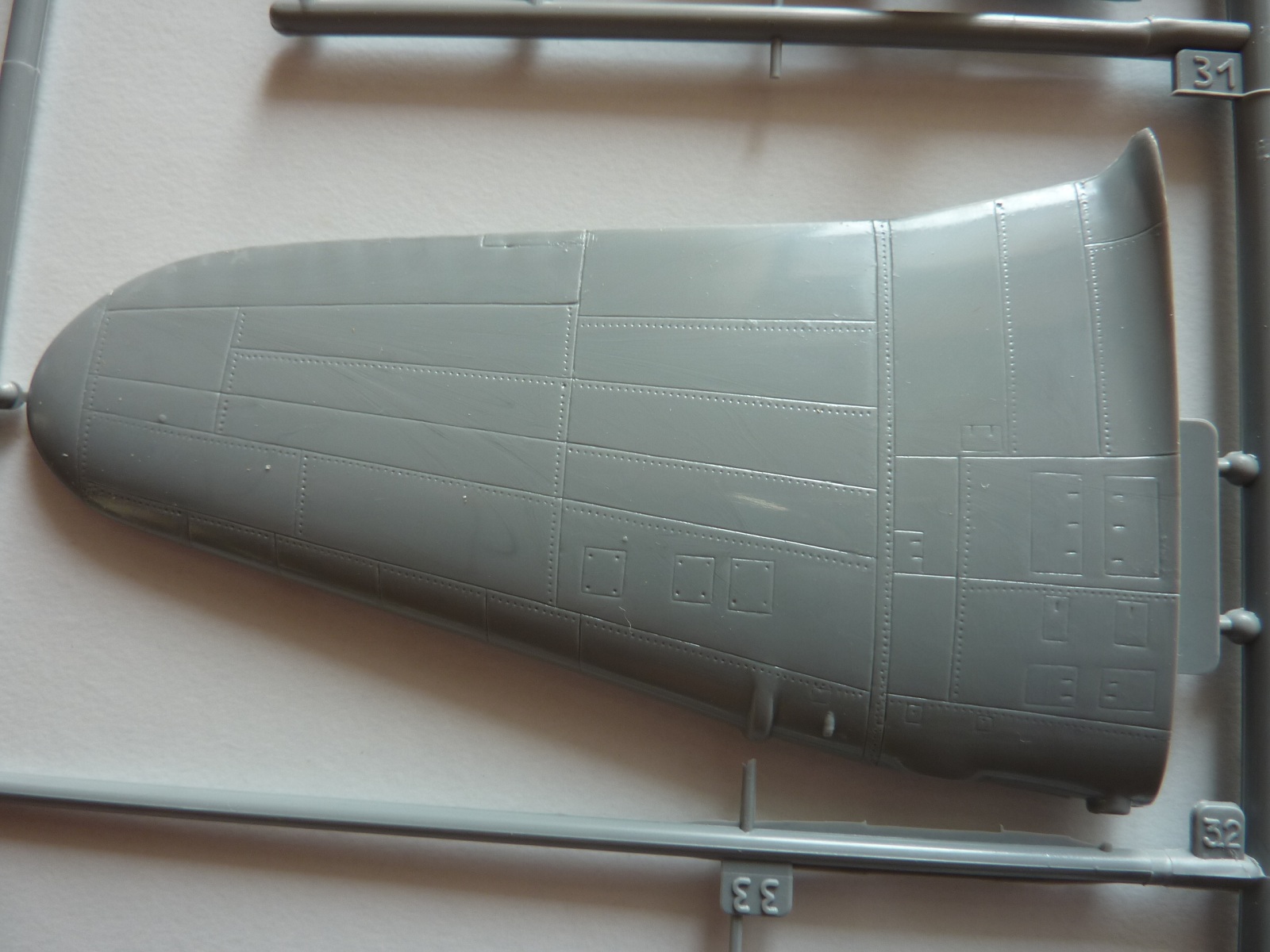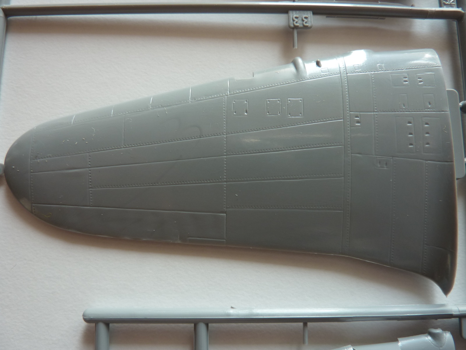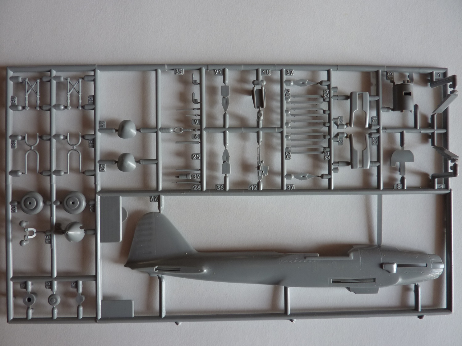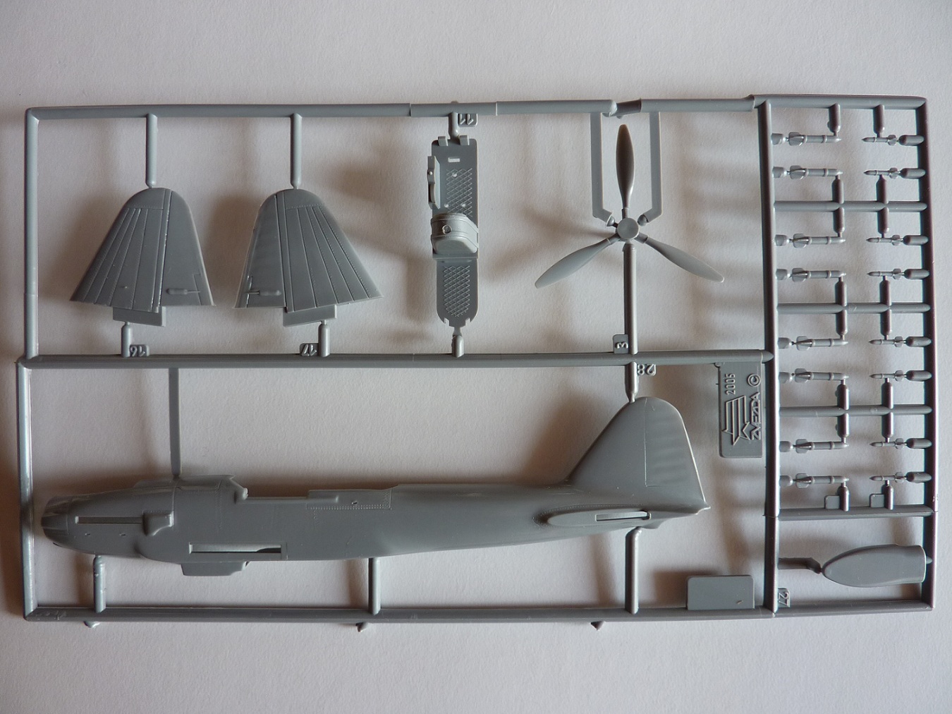 Здравствуйте коллеги! Ещё один обзор. Коробка с верхней загрузкой. В коробке пять рамок и светло-серого пластика и одна из прозрачного. Расшивка внутренняя,имеется клепка. Облоя практически нету, но на одной нижней части крыла имеется какие то наляпы пластика. С наборе дано два варианта фонаря кабины, не очень хорошего качества. Инструкция и декали даны на два варианта окраски. Декали со смещением рисунка и с пожелтевшей лаковой подложкой.