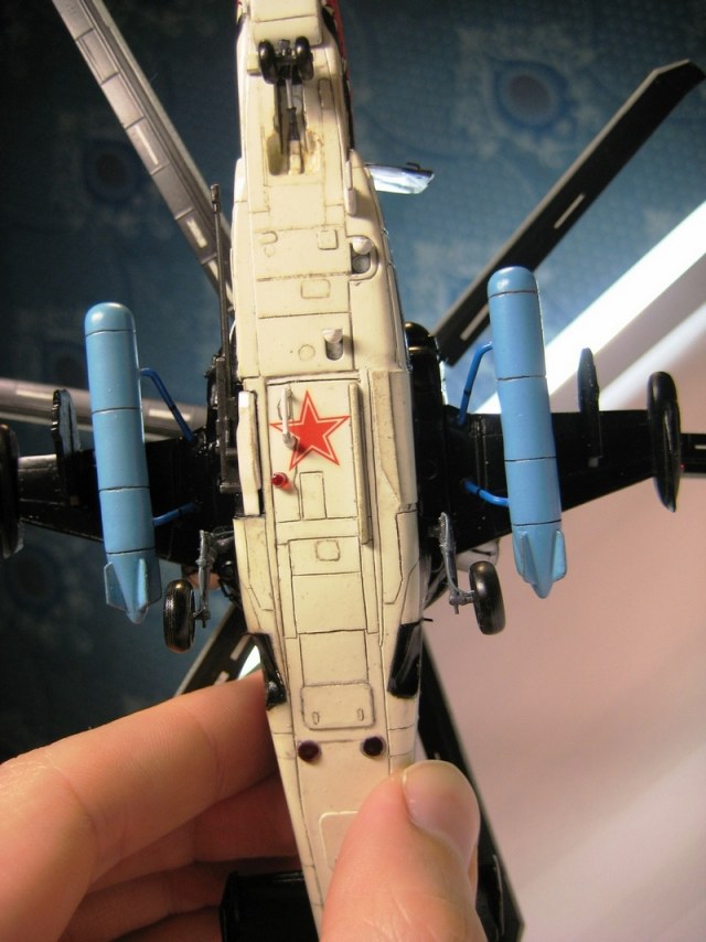 Настоящий Ка-50 блестит как у кота. Но не весь. Просто нужно покрывать глянцем именно те поверхности, которые на живой машине глянцем и покрываются, а те что матовые, покрывать матовым лаком. Тогда будет гармонично. А так даже покрышки глянцевые. А по сборке, всё даже очень хорошо получилось.