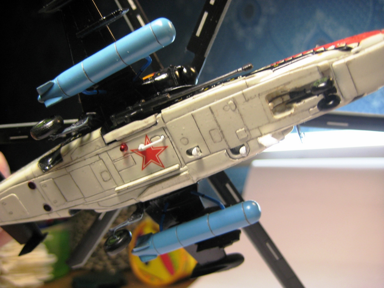 Моя любимая акула. А вот насчёт литников, у вас случаем фюзеляж не из двух половинок собирался? Такая старая модель Итала, а Звезда современная иная.