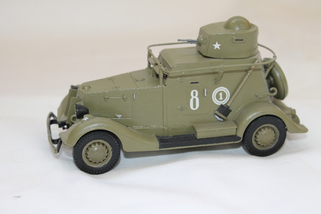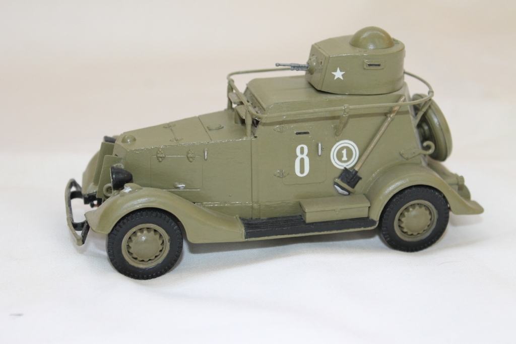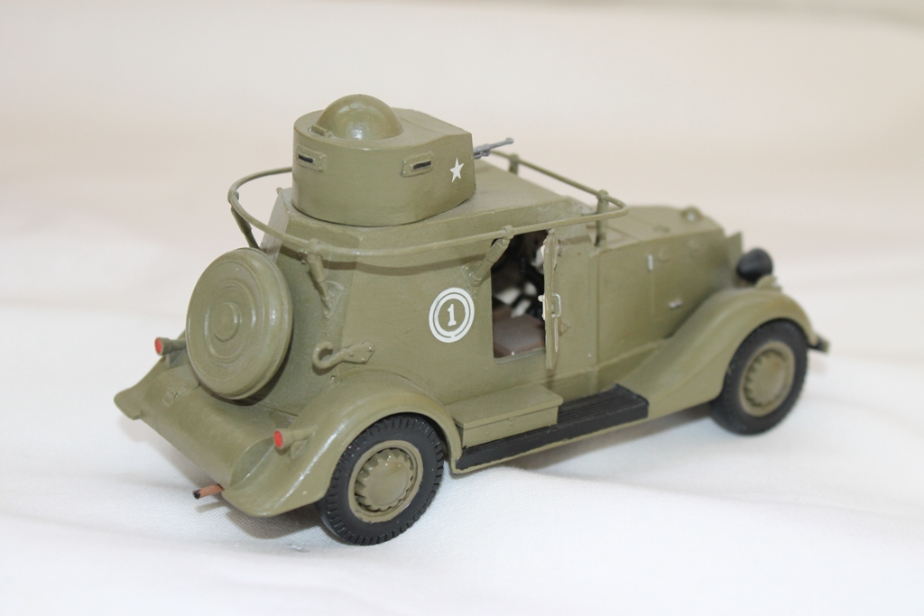 Ну дверь по левому борту откровенно прикрашена. Такие детали надо или делать рабочими, или приклеивать после окраски. Ручки лючков тоже надо менять на проволочные. Корпуса фар как правило тоже окрашивались, хотя могли быть и чёрными. А ниппели игде на колёсах? Это так, по мелочи...