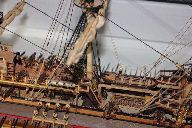 По мелочи это паруса, но лучше не снимать. Без парусов лично мне модели не нравятся, пускай даже пластик будет, но с парусом. По ткани мне все советовали батист. Купил какой то тонкий и прозрачный, для парусов на Виктори, поэтому на Виктори у меня паруса в два слоя склеены))).