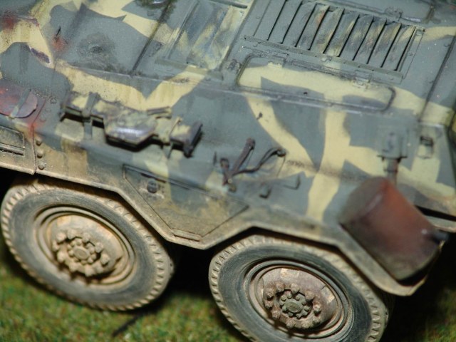 Мелочёвку очень интересно рассматривать,лопата удалась,да ивсё остальное.Но вот циликом,этот ядовитый фон у броневика весь визеринг крадёт"имхо",на чёрнобелом машина смотрится естественно.