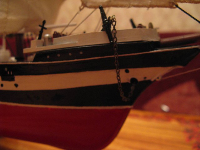 - не могу представить, каким образом матросы затащили тяжеленные якоря на борт судна - кроме якорь-цепей никакого другого якорного вооружения не увидел.