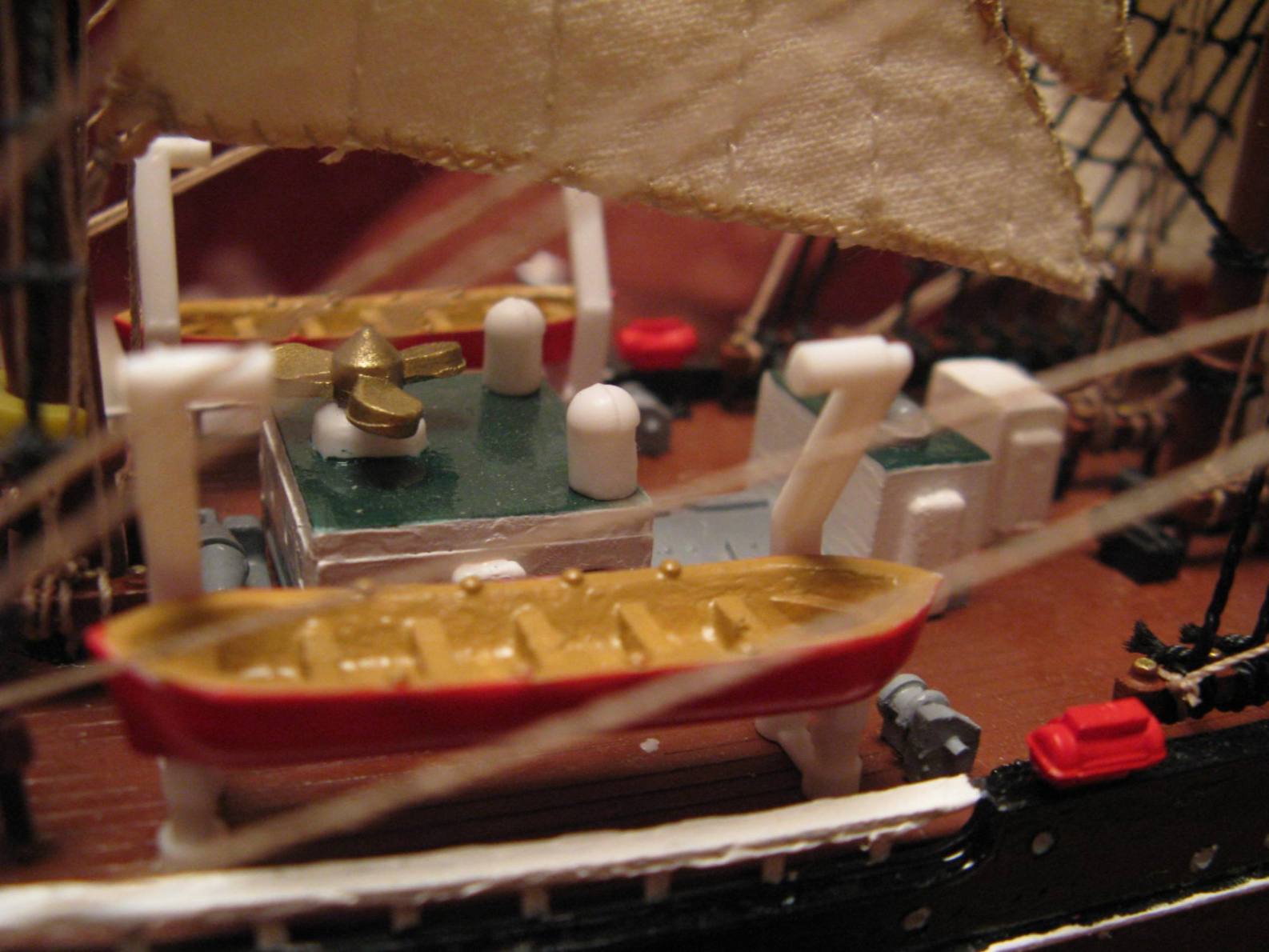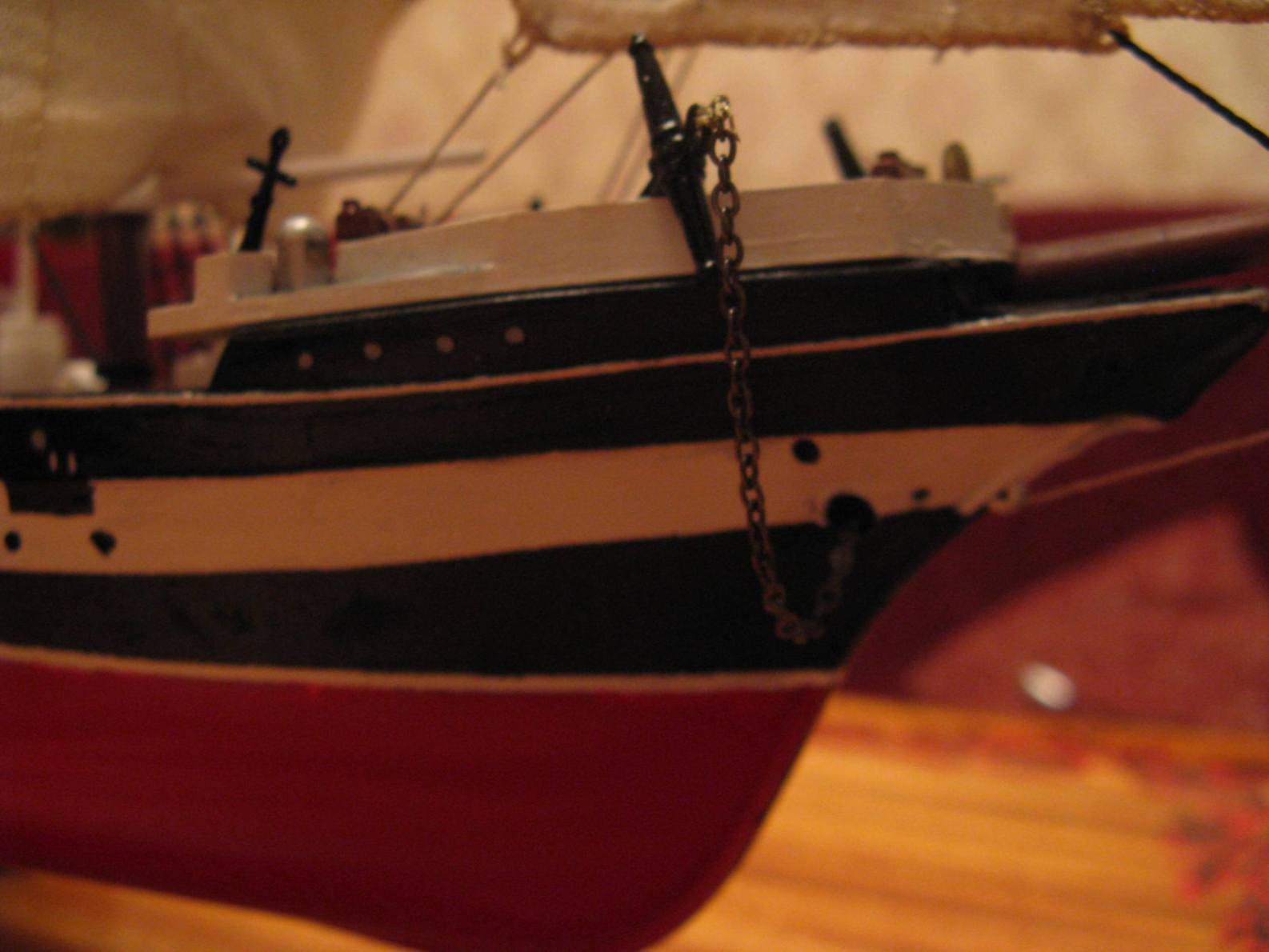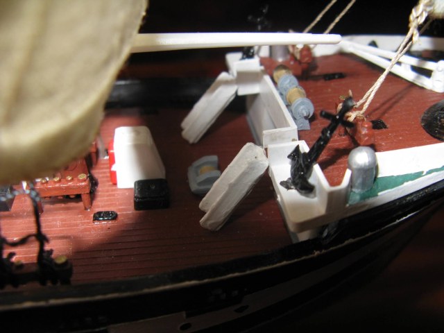 на фото оригинального барка якоря лежат на этом месте, а внизу идет цепь и лебедка (если получится, я сфоткаю на модели).