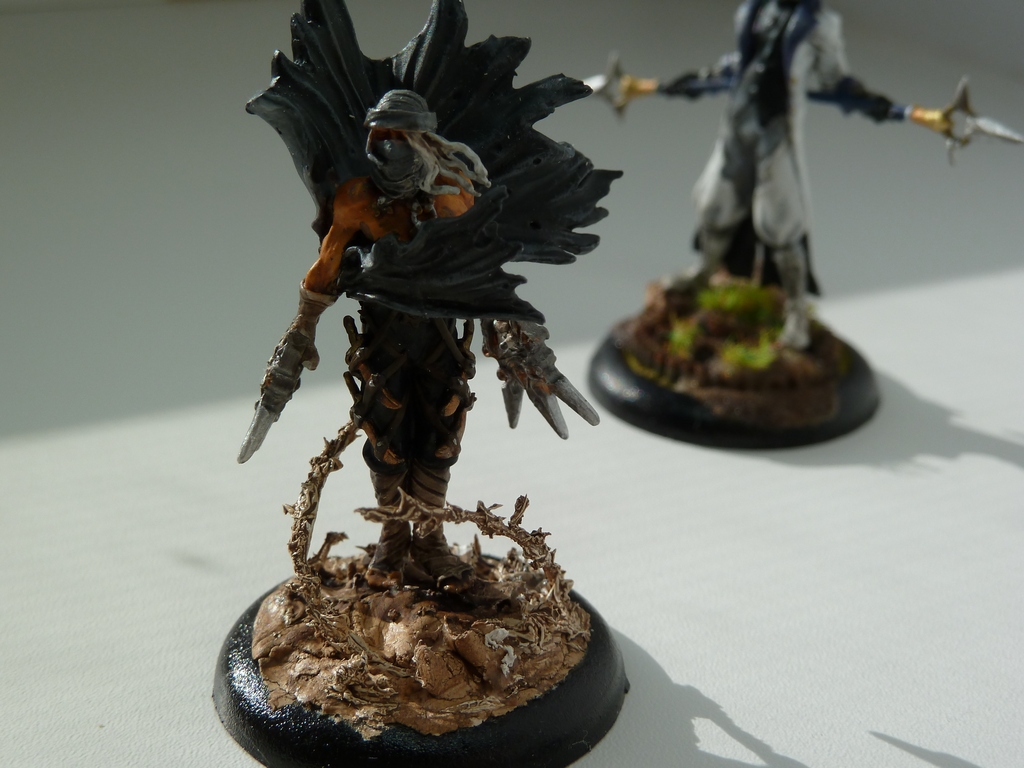 новый опыт в изготовлении подставок: одна вылеплена из tamiya putty вторая с использованием пластиковой шестеренки от сломанного проигрывателя. красил акрилами валеджо и цитадель