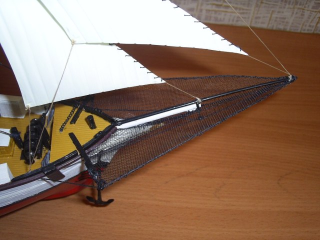Модель в целом - понравилась. Сетка под бушпритом подтверждает то, что дело имею с коллегой-моделистом. Но за такелаж - двойка! Вы просто "ниточки натянули" как в инструкции.... Ничего, пройдет, научитесь...