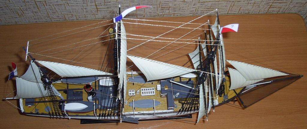 Действительно, нитки натягивал, исключительно глядя в инструкцию, равно, как и все остальное, за исключением сетки под бушпритом и цепочки для якоря, купил в магазине за 20 рублей ) Уже после отыскал в глобальной сети документальные фотографии Пуркуа Па и немного разочаровался, ввиду несоответствия инструкции с тем, как выглядел ПП на самом деле. Хотя на некоторых фотографиях ПП выкрашен в разные цвета, т.е. его перекрашивали. Для такелажа не было никаких деталей, а в действительности ведь это не просто натянутые нитки. Буду учиться потихоньку, главное, что желание присутствует, значит должно со временем получаться лучше. Спасибо!