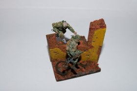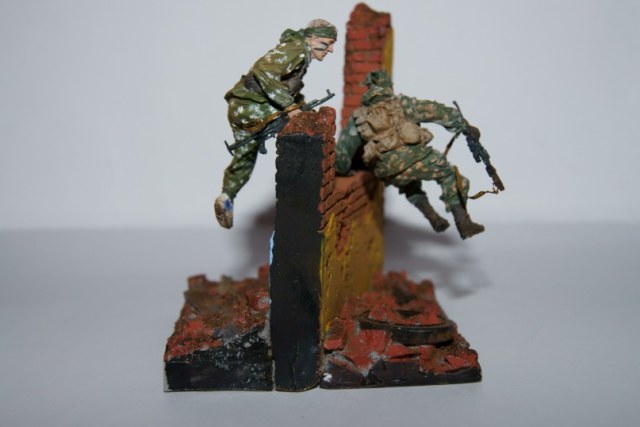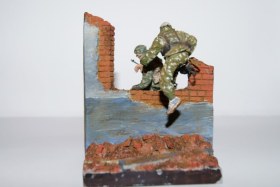 Фигуры знаменитого Питерского скульптура Сергея Менелаева,смола,в покраске были использованы краски фирмы Тамия,лица и кое где местами покрашены темперой Мастер Класс,плюс натур продукт кирпич,который был измельчён в пыль...
