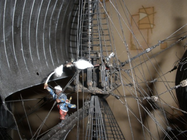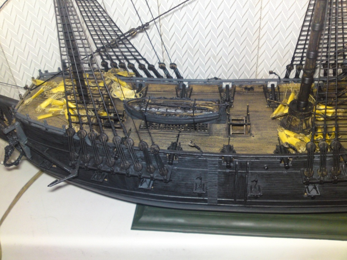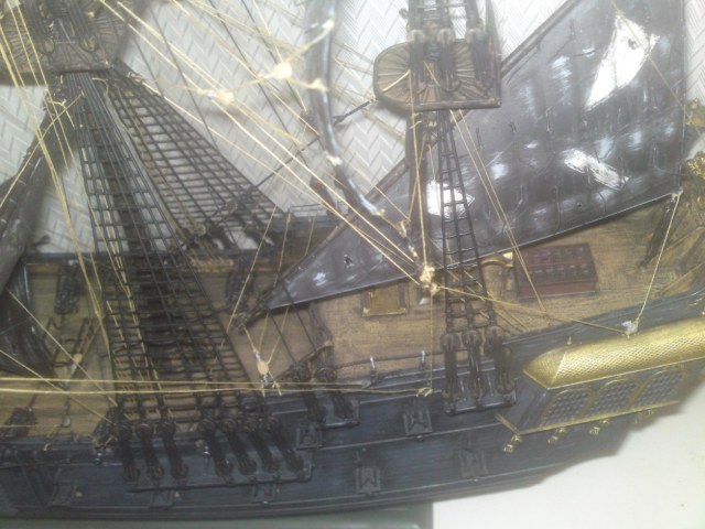 А в целом стало грустно....ТАКАЯ ПРОРАБОТКА такелажа!!!! и ..... вроде как в орудии отсыревший порох..... Вместо модели - ночник....