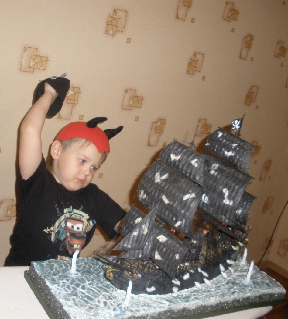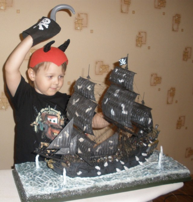 Что касается парусов, именинница захотела чтобы были следы от ядер и вообще по фильму было именно так (по крайней мере в первой серии), хотел сделать тканевые но ведать не дорос...