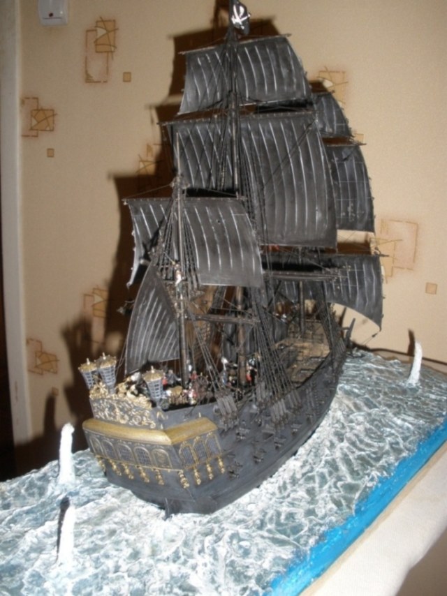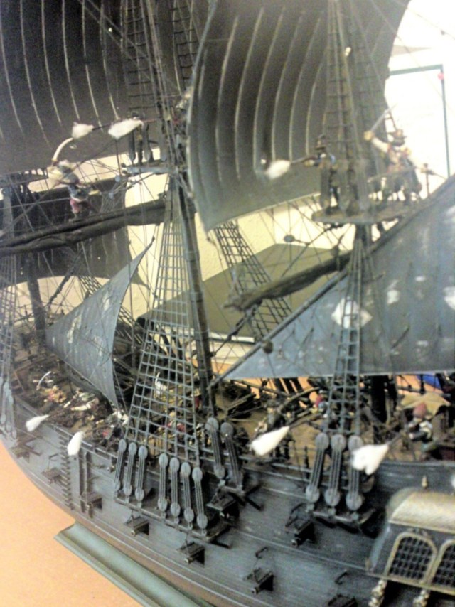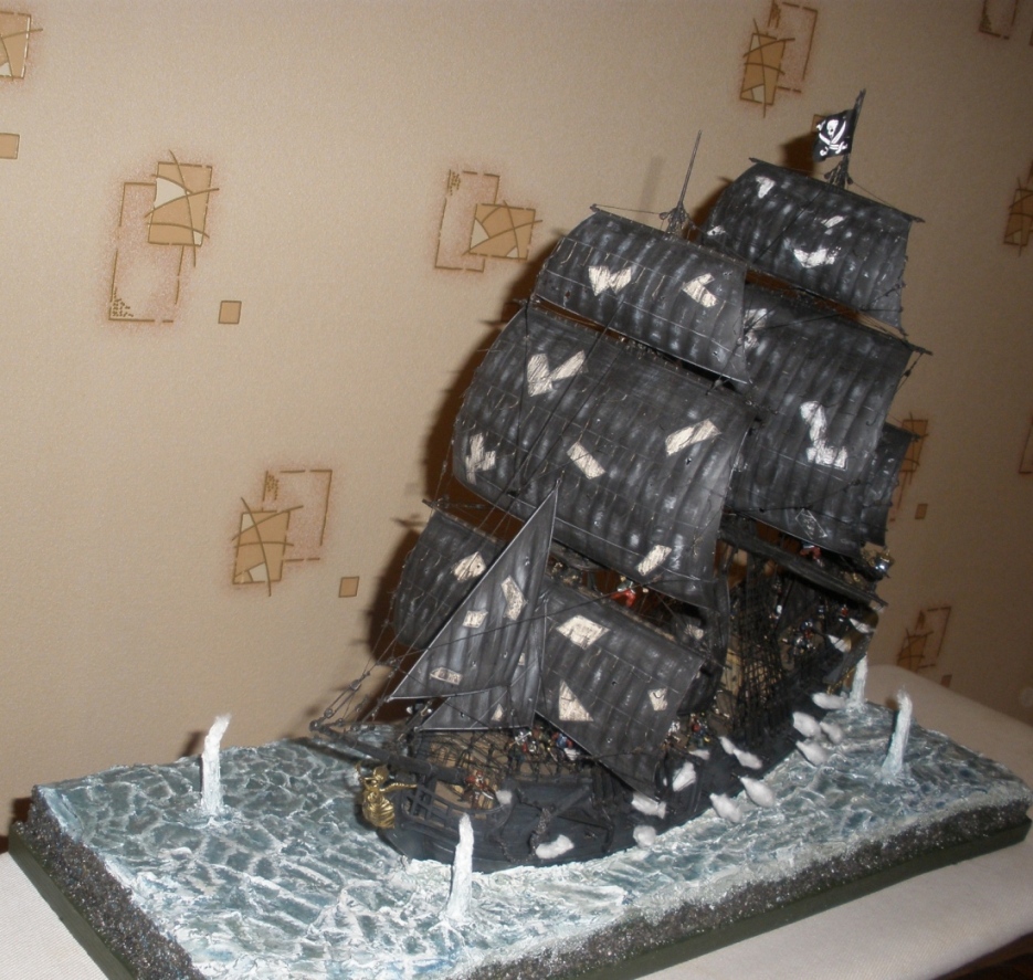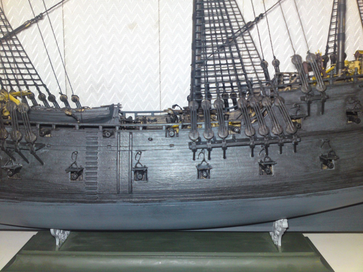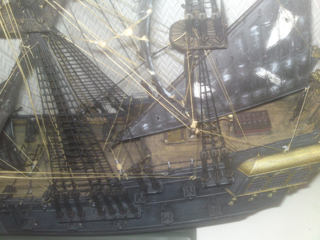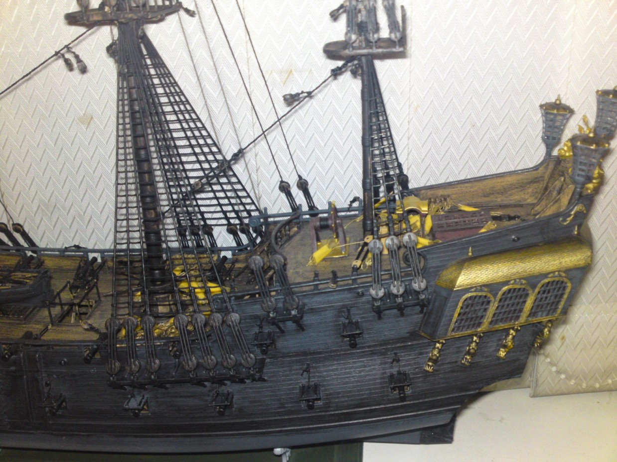 Сначала хотелось похвалить - такелаж, окраска палубы, тали орудий..... А вот дальше.... "Жемчужина" и "Летучий Голландец" - две большие разницы. Откуда у "Жемчужины" такие рваные паруса????